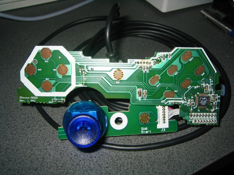 - Front of the Warrior pad pcb. The internal cable connector is labelled from left to right - SHLD, GND, VCC, DATA, CLK, so you can follow how it was wired up.